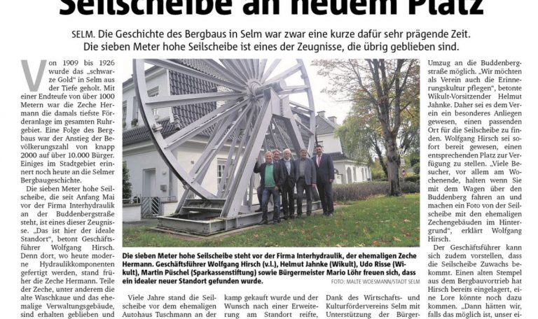 Die Geschichte des Bergbaus in Selm war zwar eine kurze dafür sehr prägende Zeit. Die sieben Meter hohe Seilscheibe ist eines der Zeugnisse, die übrig geblieben sind. (Quelle und Foto: Sonntagskurier)