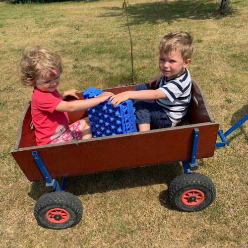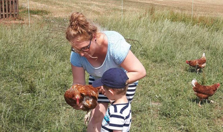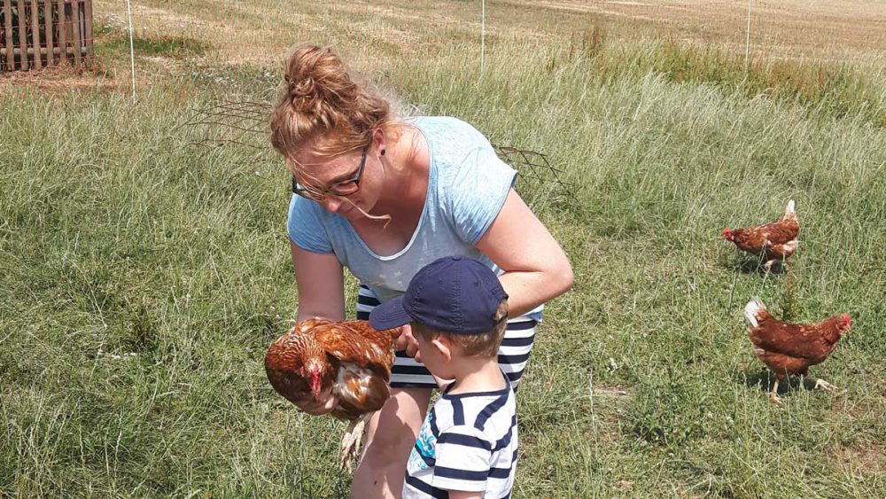 Abschließend trafen die beiden Gruppen zum gemeinsamen Grillen, ergänzt mit den von den Kindern hergestellten Produkten, wieder zusammen. Hier konnten dann die Erlebnisse und die neu gesammelten Erfahrungen bei reichlichen Speisen und Getränken ausgetauscht werden. Zum Schluss ging es noch zum Hühnermobil, bei dem die Kinder die Möglichkeit hatten, die Tiere und ihre Lebensart näher kennen zu lernen.