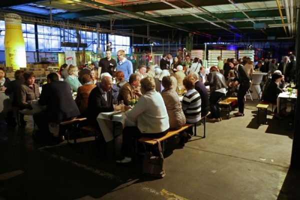 Nach der Stärkung am Buffet – vom hauseigenen Partyservice der Bäckerei Kanne zubereitet – nahmen die Gäste gerne an den angebotenen Führungen durch den Betrieb teil. Diese waren nicht nur informativ, sondern auch optisch ein Genuss, denn Wilhelm Kanne und seine Familie hatten die Produktionsanlagen sprichwörtlich ins rechte Licht gerückt. Getreidesilos, Backstraße, Fermentertanks und Abfüllanlage wurden farbig angestrahlt und erzeugten so ein Bild leuchtender Industriekultur.