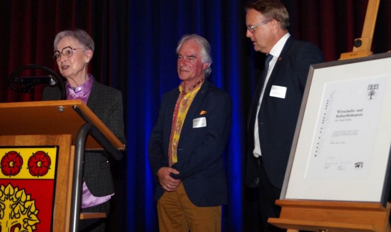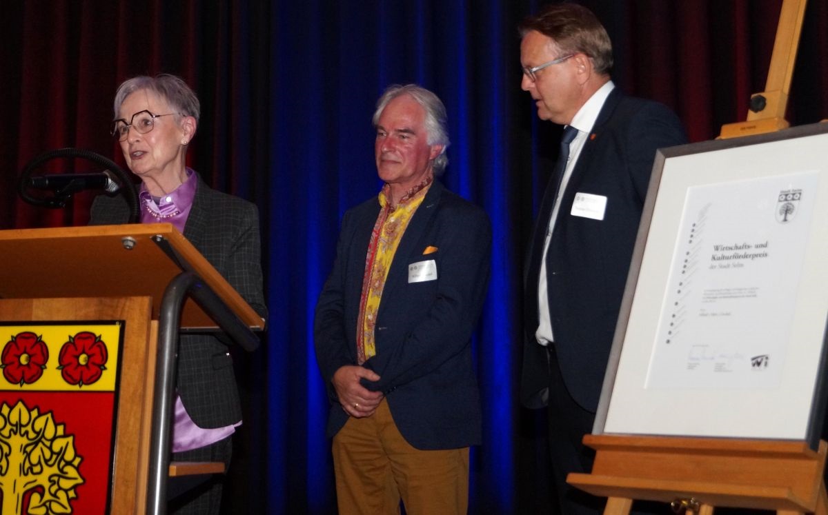Margot Berten, Mitglied im Vorstand des WiKult, erinnerte an die lange Geschichte des Preises und begrüßte die letzte Preisträgerin, Elisabeth vom Hofe. „Das letzte Mal hatten wir eine Preisträgerin aus dem Bereich der Wirtschaft, nun ist also wieder die Kultur an der Reihe“, so Berten.